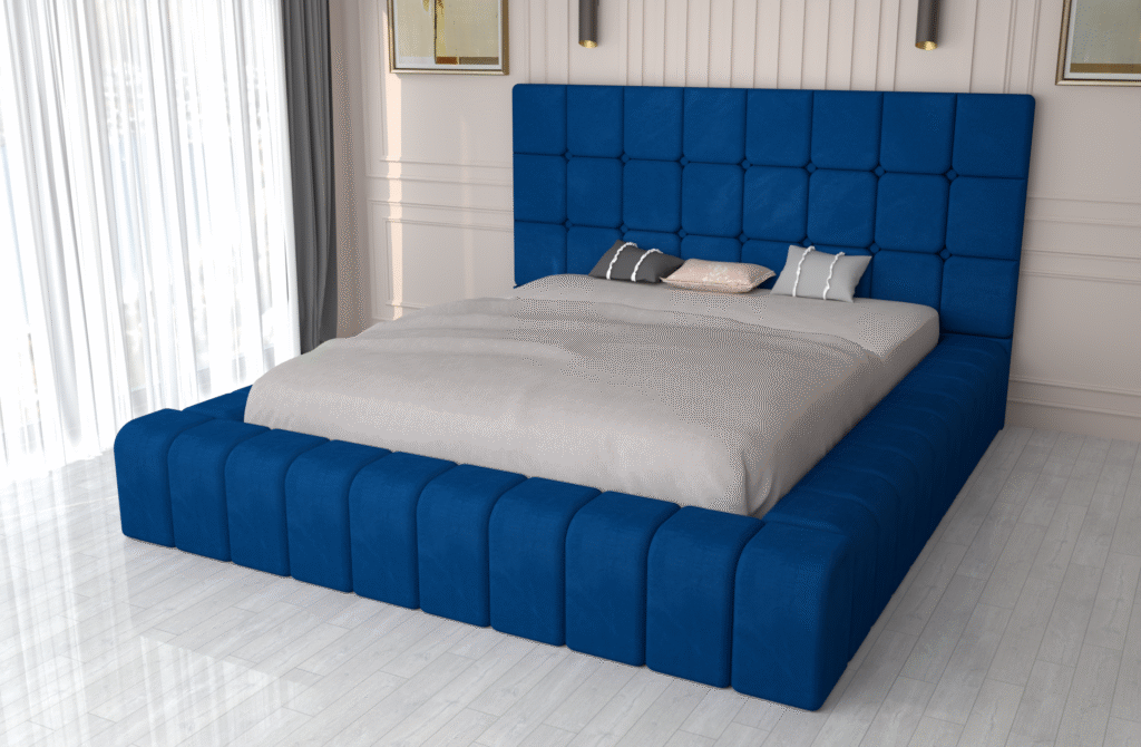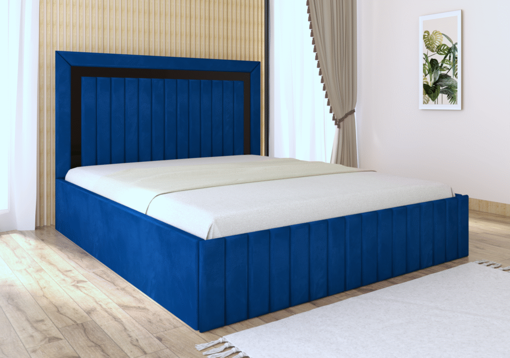 Pat tapitat Matei Albastru Stofa cu oglinda Neagra