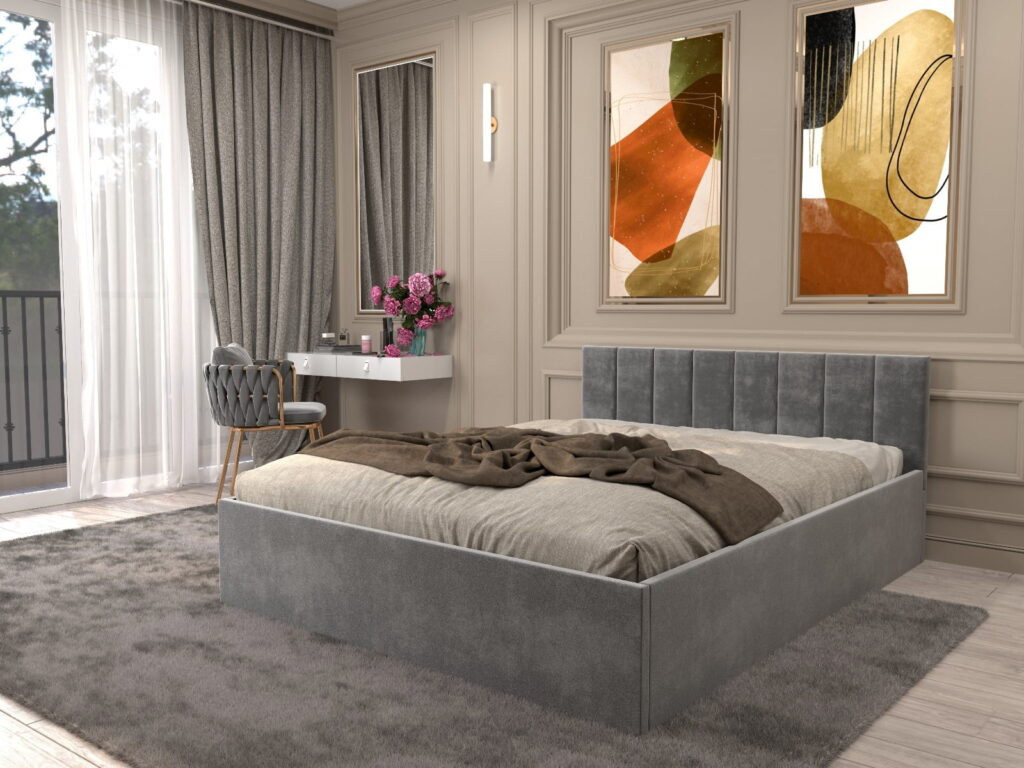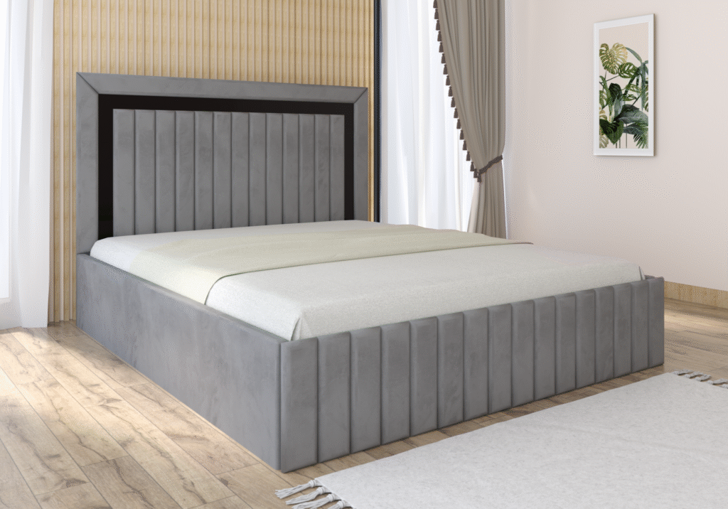 Pat tapitat Matei Gri Stofa cu oglinda Neagra