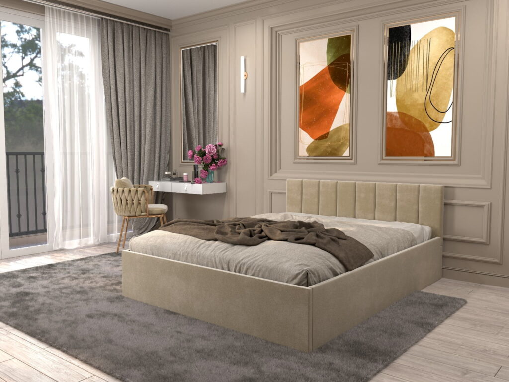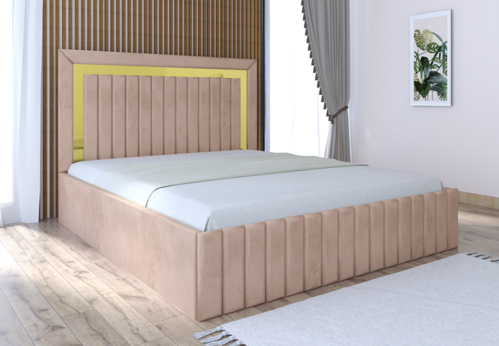 Pat tapitat Matei Bej Stofa cu oglinda Gold