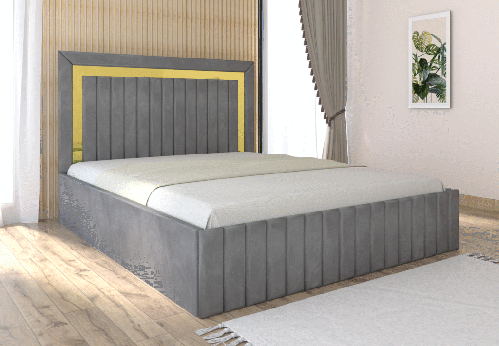 Pat tapitat Matei Gri Stofa cu oglinda Gold