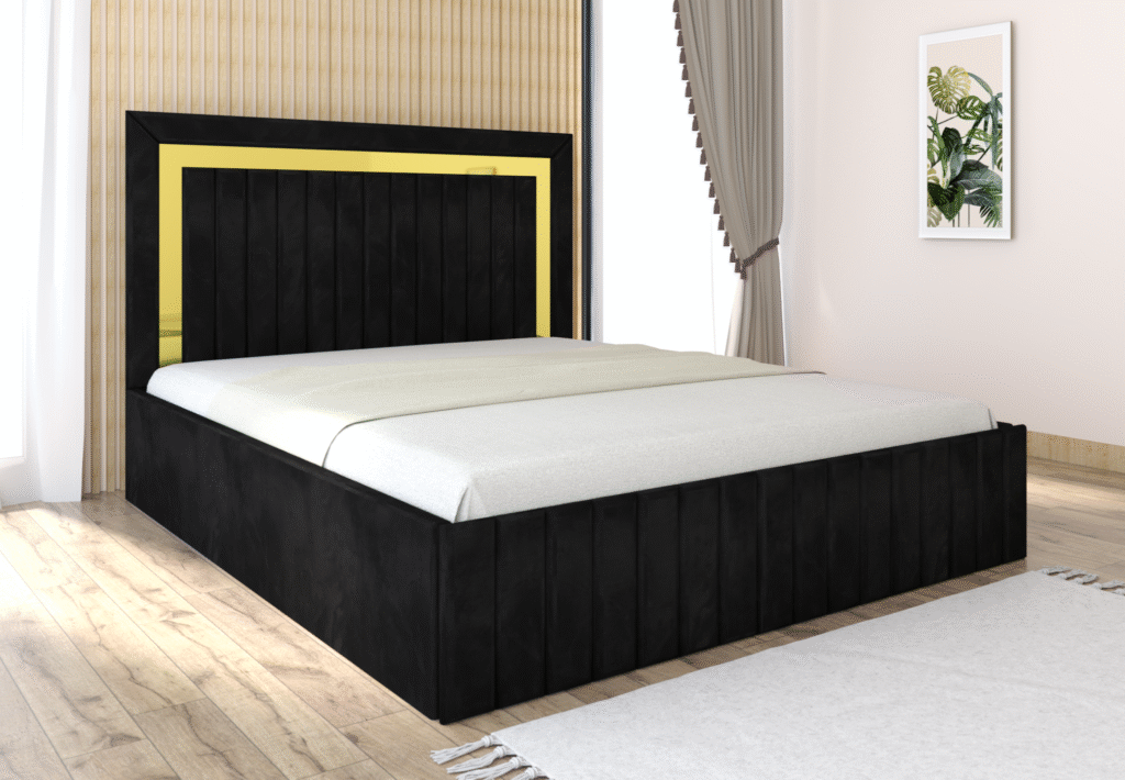 Pat tapitat Matei Negru Stofa cu oglinda Gold
