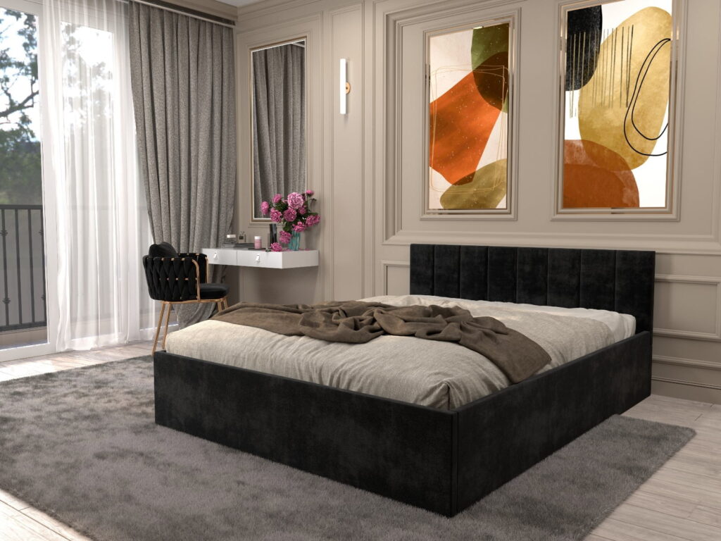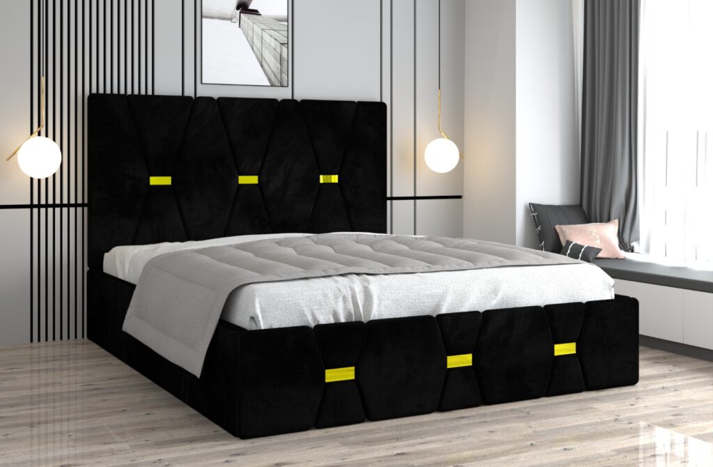 Pat tapitat Matei Negru Stofa cu oglinda Gold