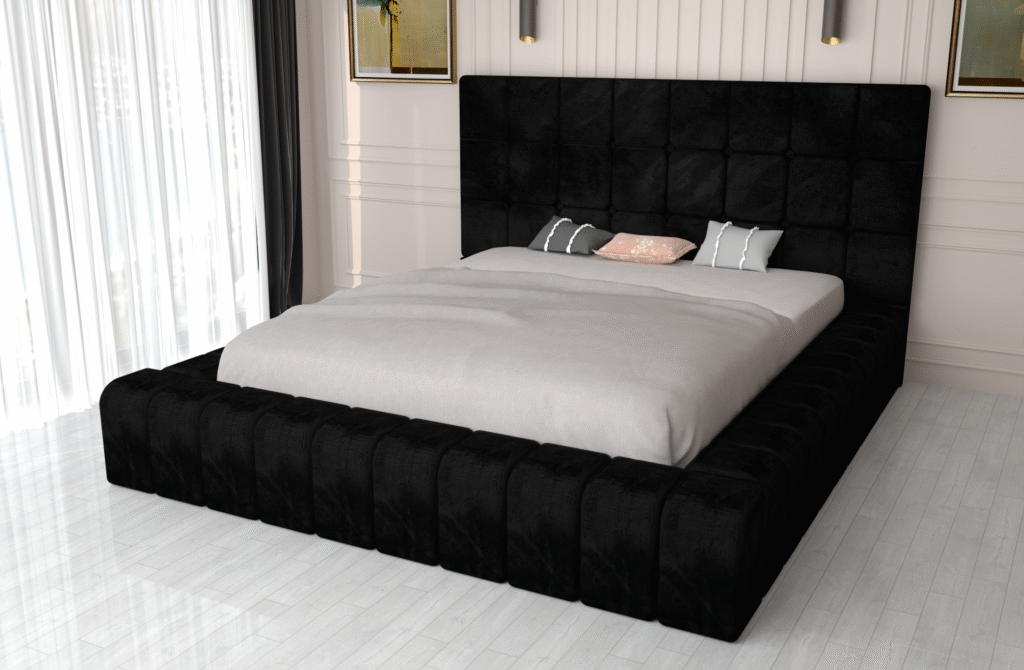 Pat tapitat Matei Negru Stofa cu oglinda Gold