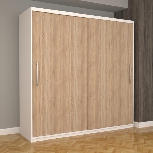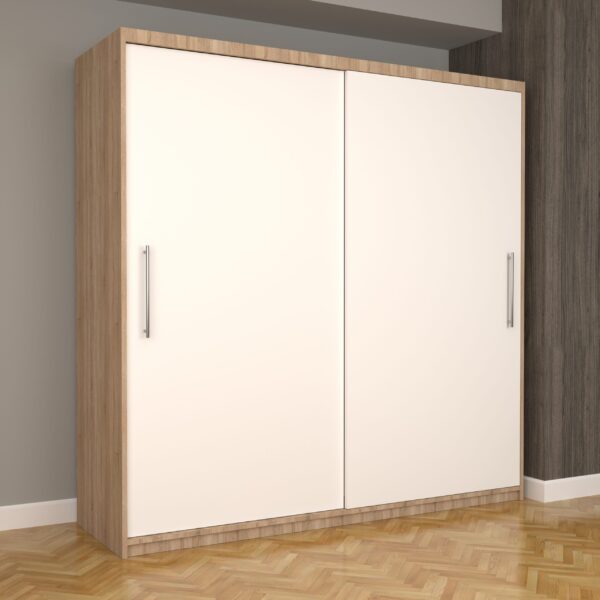 Dulap Dormitor Nova Eco 200 cm x 200 cm fara oglinda, sonoma cu usi glisante albe