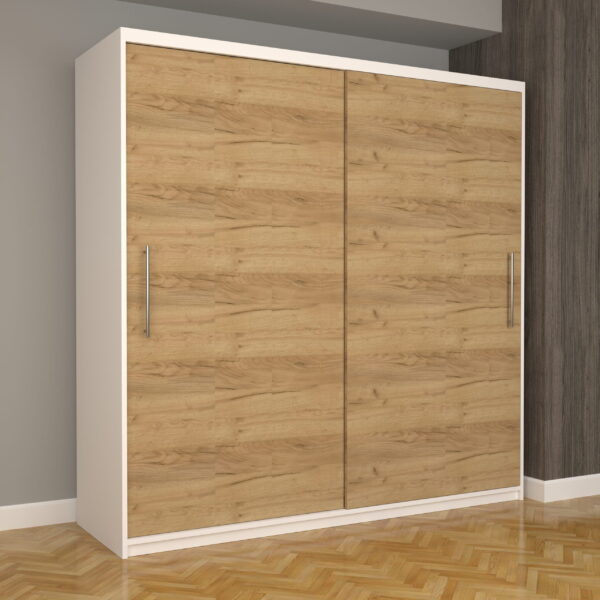 Dulap Dormitor Nova Eco 200 cm x 200 cm fara oglinda, alb cu usi glisante oak craft gold