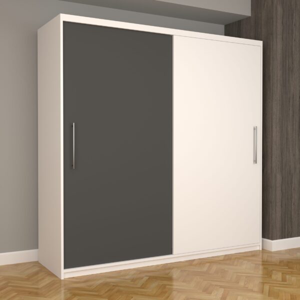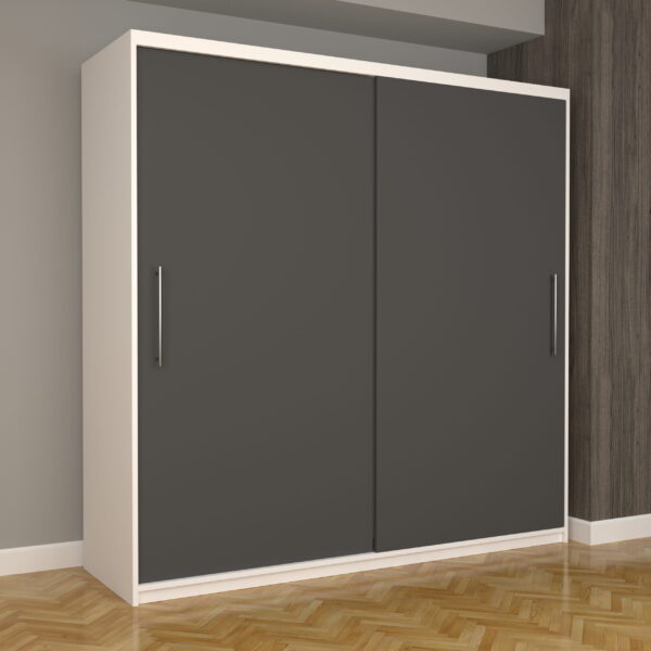 Dulap Dormitor Nova Eco 150 cm x 200 cm, fara oglinda, gri cu usi glisante gri alb