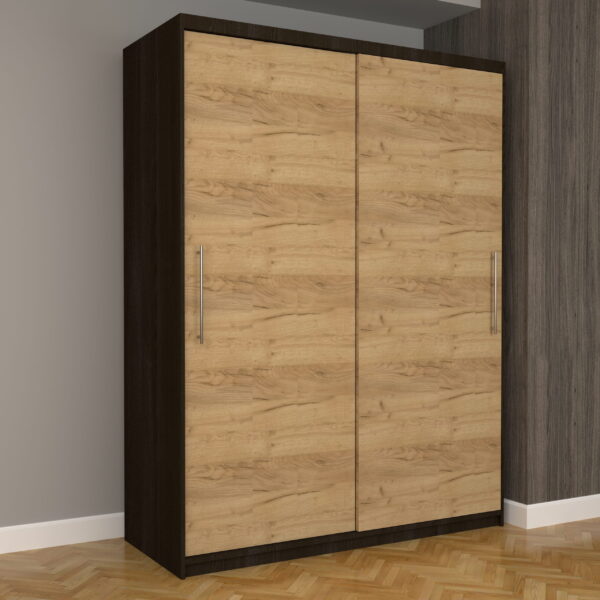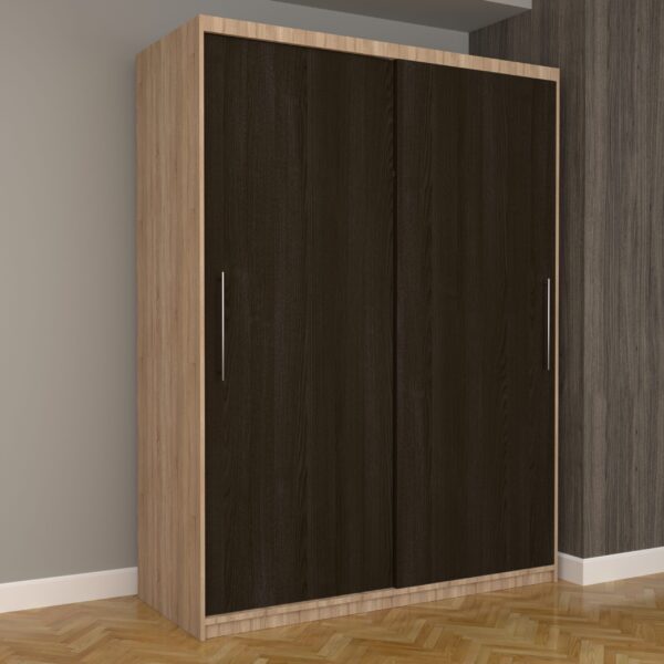 Dulap Dormitor Nova Eco 150 cm x 200 cm, fara oglinda, wenge cu usi glisante stejar sonoma
