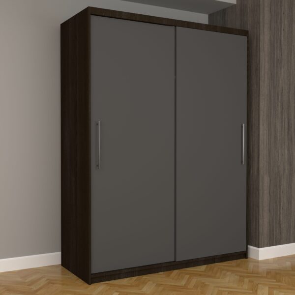 Dulap Dormitor Nova Eco 150 cm x 200 cm, fara oglinda, wenge cu usi glisante gri sonoma