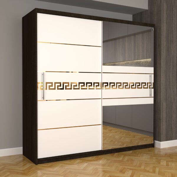 Dulap Dormitor Nova Gold 200 cm x 200 cm cu oglinda Wenge cu usi glisante Albe