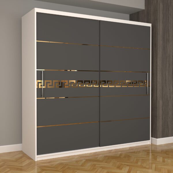 Dulap Dormitor Nova Gold 200 cm x 200 cm fara oglinda Alb cu usi glisante Gri