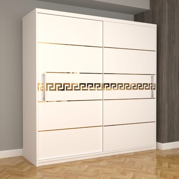 Dulap Dormitor Nova Gold 150 cm x 200 cm cu oglinda Alb cu usi glisante Alb