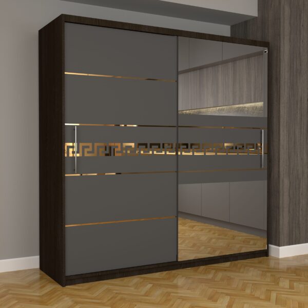 Dulap Dormitor Nova Gold 150 cm x 200 cm , cu oglinda , Wenge cu usi glisante Gri