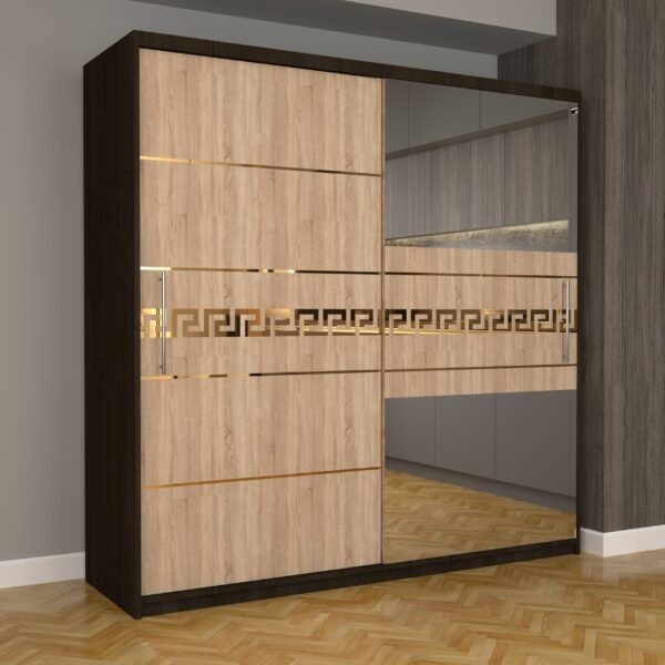 Dulap Dormitor Nova Gold 200 cm x 200 cm cu oglinda Wenge cu usi glisante Sonoma