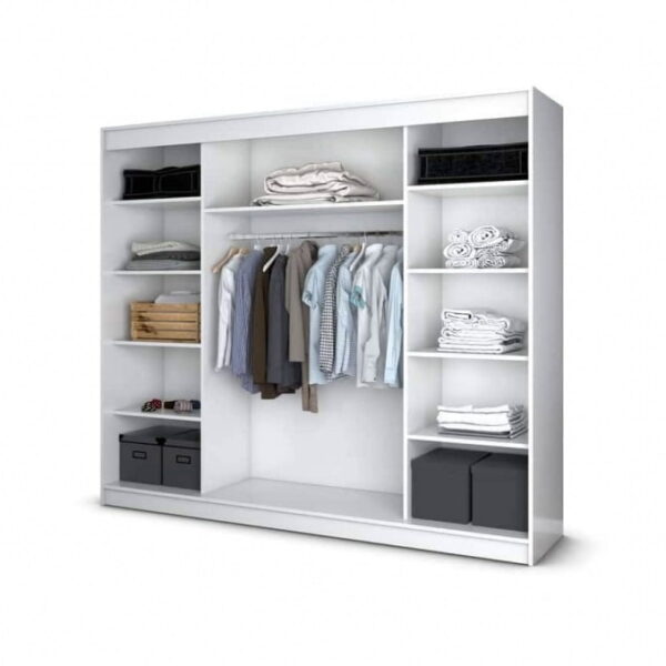 Dulap Dormitor Nova Gold 250 cm x 200 cm Fara oglinda Wenge cu usi Glisante Alb