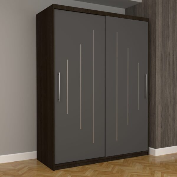 Dulap Dormitor Nova Ultra 150 cm x 200 cm , fara oglinda , wenge cu usi glisante gri