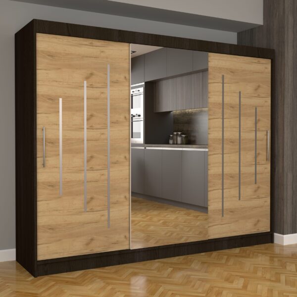 Dulap Dormitor Nova Ultra 250 cm x 200 cm , cu Oglinda , Wenge cu usi glisante Oka Craft Gold