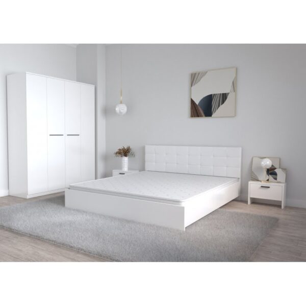 Set Dormitor Coral Alb cu tablie tapitata Dulap Lorena 4 usi si Noptiere