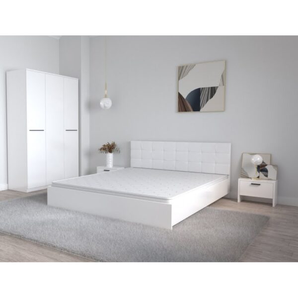 Set Dormitor Coral Alb cu tablie tapitata Dulap Lorena 3 usi si Noptiere