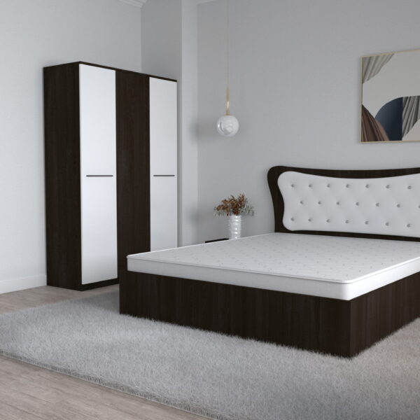 Dormitor Dante Magia Alb cu Pat Matrimonial 160 cm x 200 cm Dulap Lorena 3 usi si Noptiere