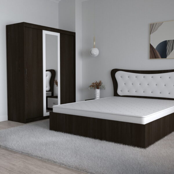 Dimensiune Pat Matrimonial: 160 cm x 200 cm, Tip Dulap: Usi Glisante cu Oglinda, Noptiere, Comoda TV Lorena.