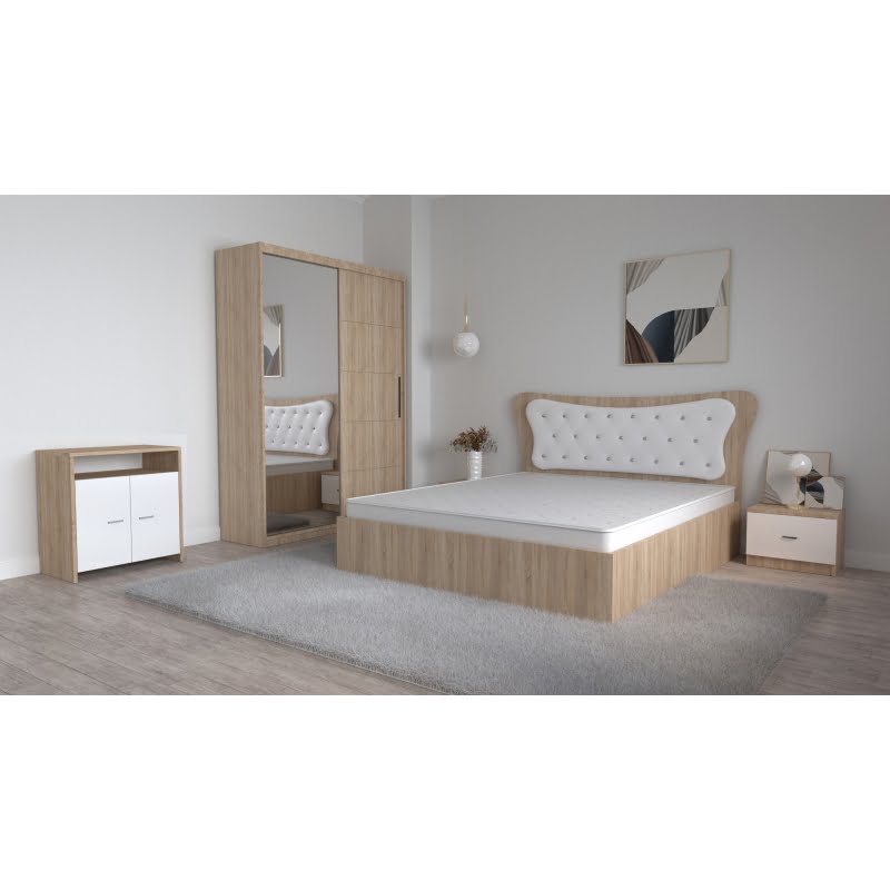 Dimensiune Pat Matrimonial: 160 cm x 200 cm, Culoare: Alb, Brand: Dante Sonoma, Dulap Usi Glisante cu Oglinda, Noptiere, Comoda Tv Lorena.