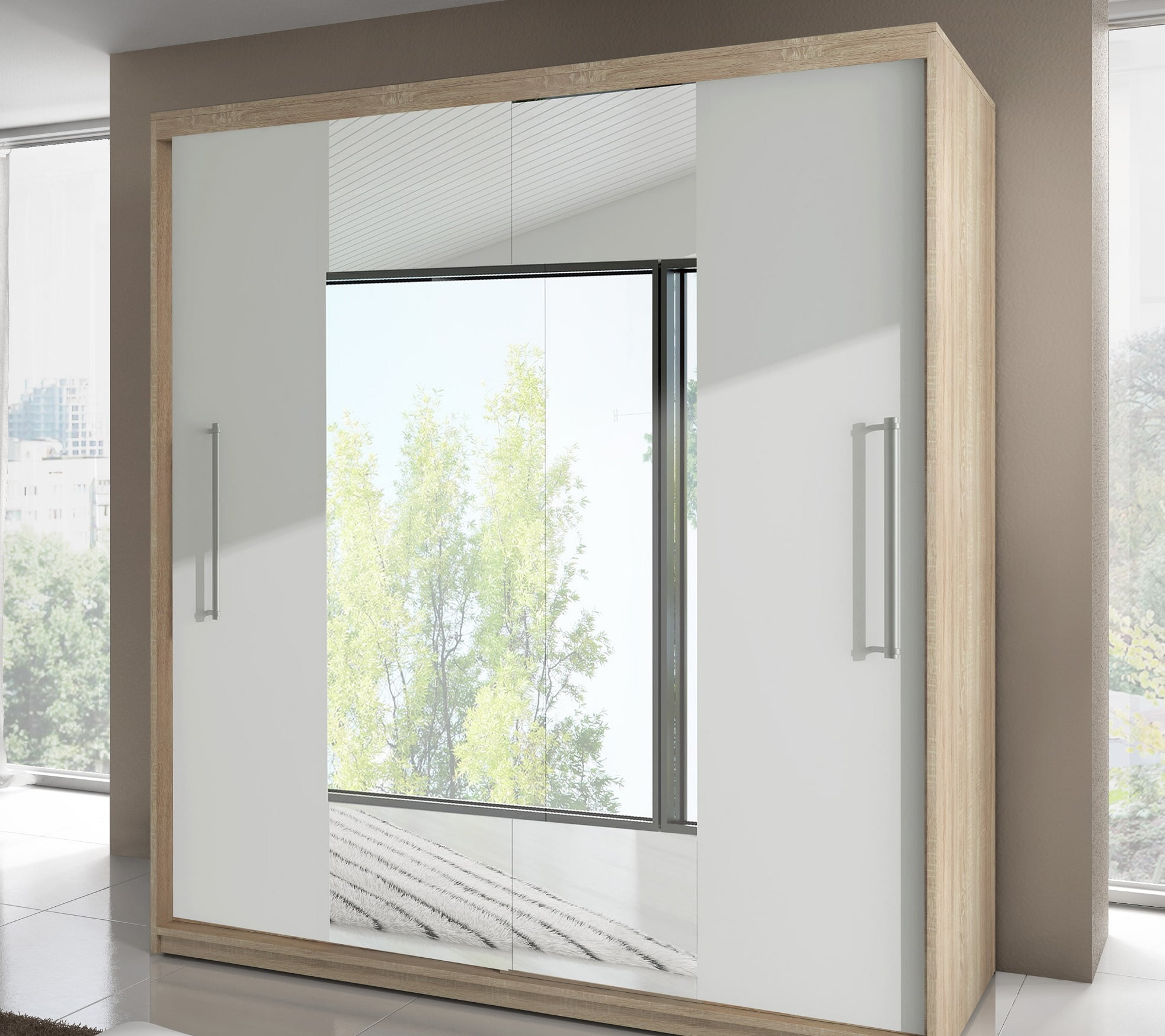 Dressingul Sebastian de 200 cm cu finisaj Sonoma și uși glisante albe cu oglindă este o alegere excelentă pentru a-ți organiza hainele și accesoriile preferate. Acesta dispune de o gamă largă de polițe astfel încât să poți avea totul la îndemână. Designul modern și elegant face ca acest dressing să fie perfect pentru orice dormitor, iar ușile glisante economisesc spațiu. Cu un spațiu de stocare impresionant și un aspect atractiv, acest dressing va adăuga un plus de stil și funcționalitate în camera ta.
