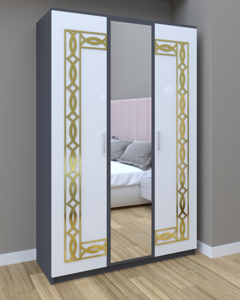 Dressing Star Daria Gold 123 cm gri cu usi albe cu oglinda