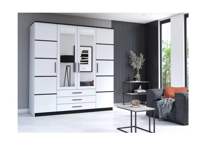 Dressing Szantal 4D alb negru 200 x 210 x 64 cm