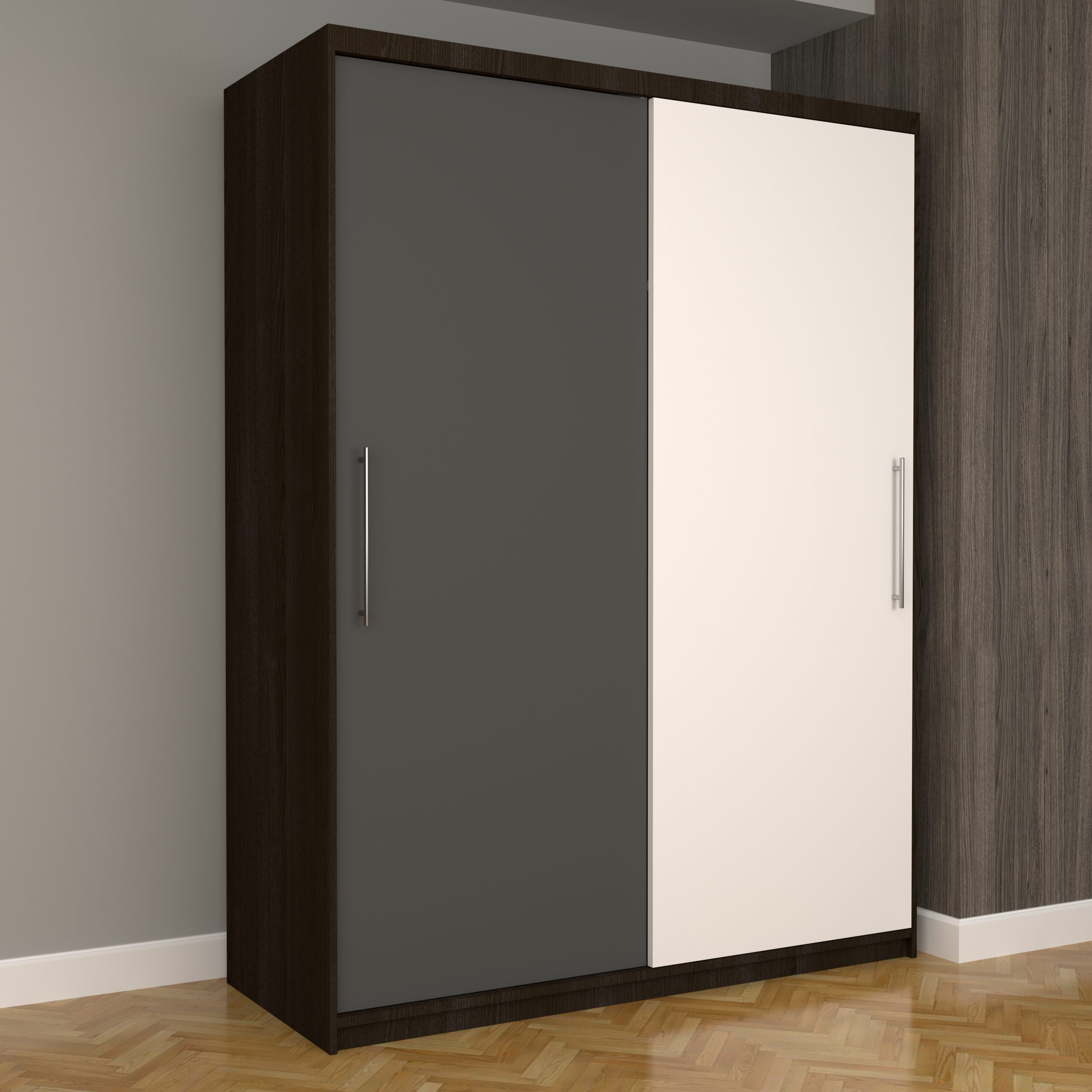 Dulap Dormitor Nova Eco 150 cm x 200 cm, fara oglinda, wenge cu usi glisante gri alb