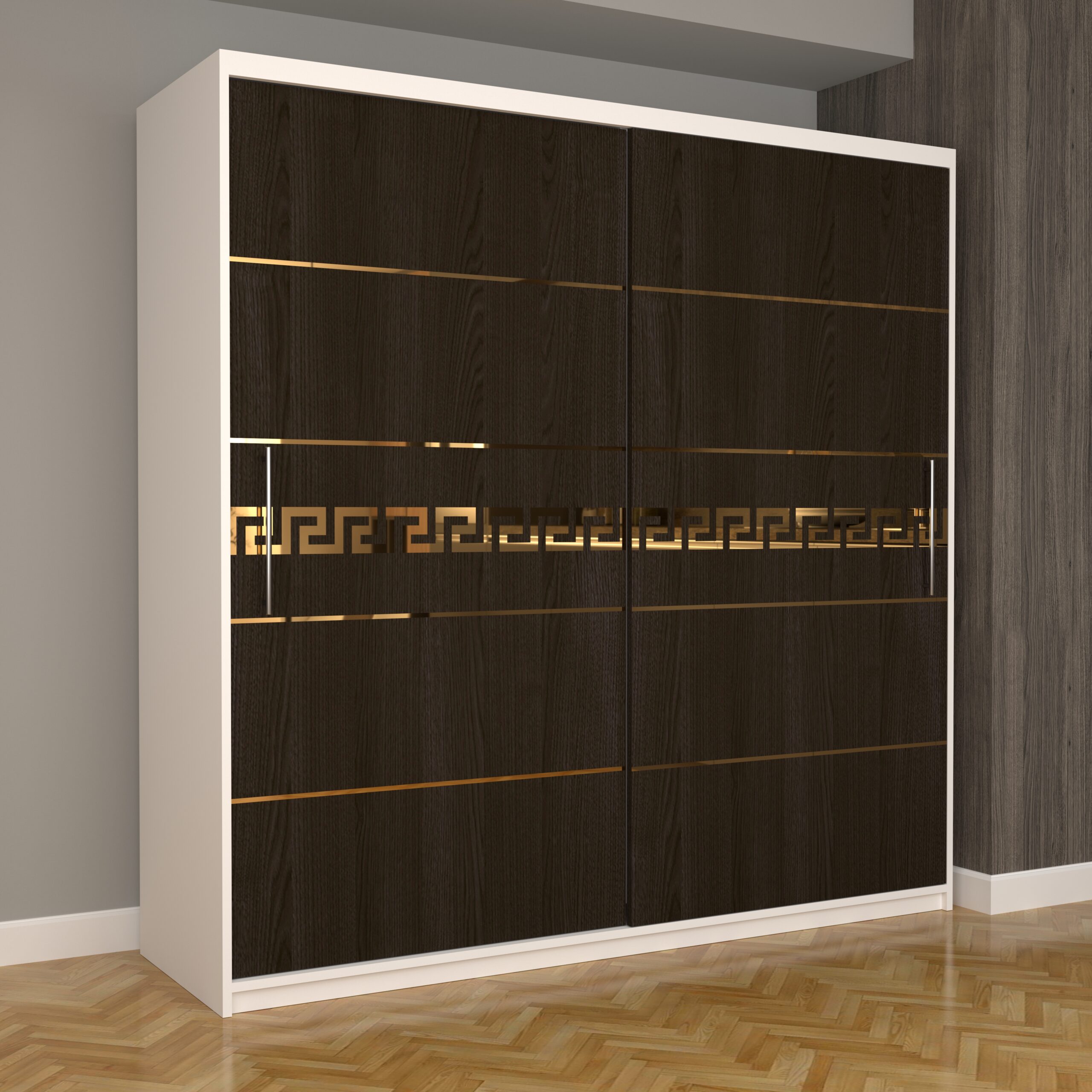 Dulap Dormitor Nova Gold 200 cm x 200 cm fara oglinda Alb cu usi glisante Wenge