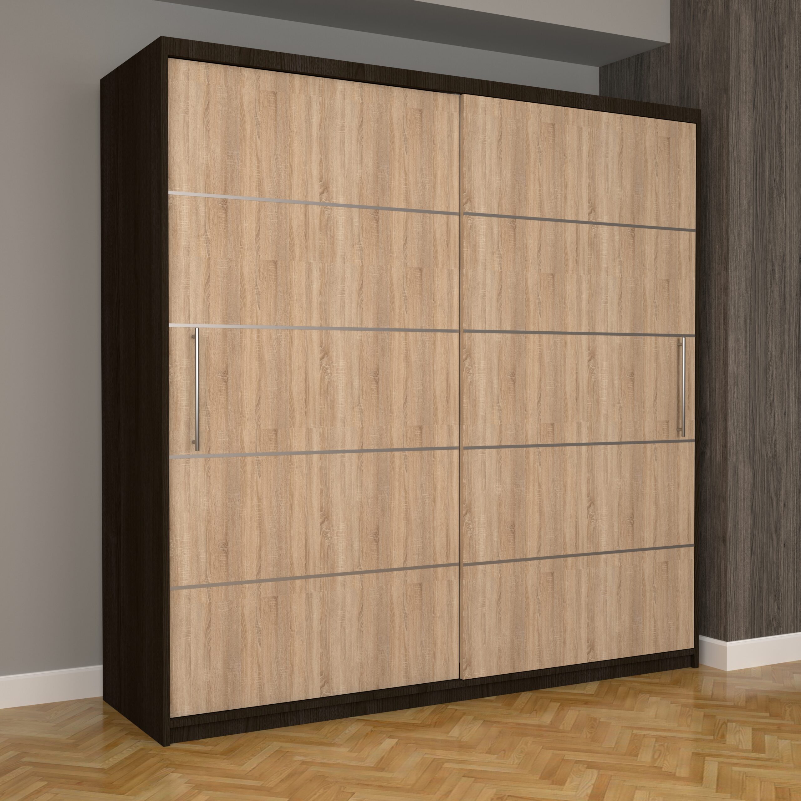 Dulap Dormitor Nova Plus 200 cm x 200 cm, fara oglinda, Wenge cu usi glisante Sonoma
