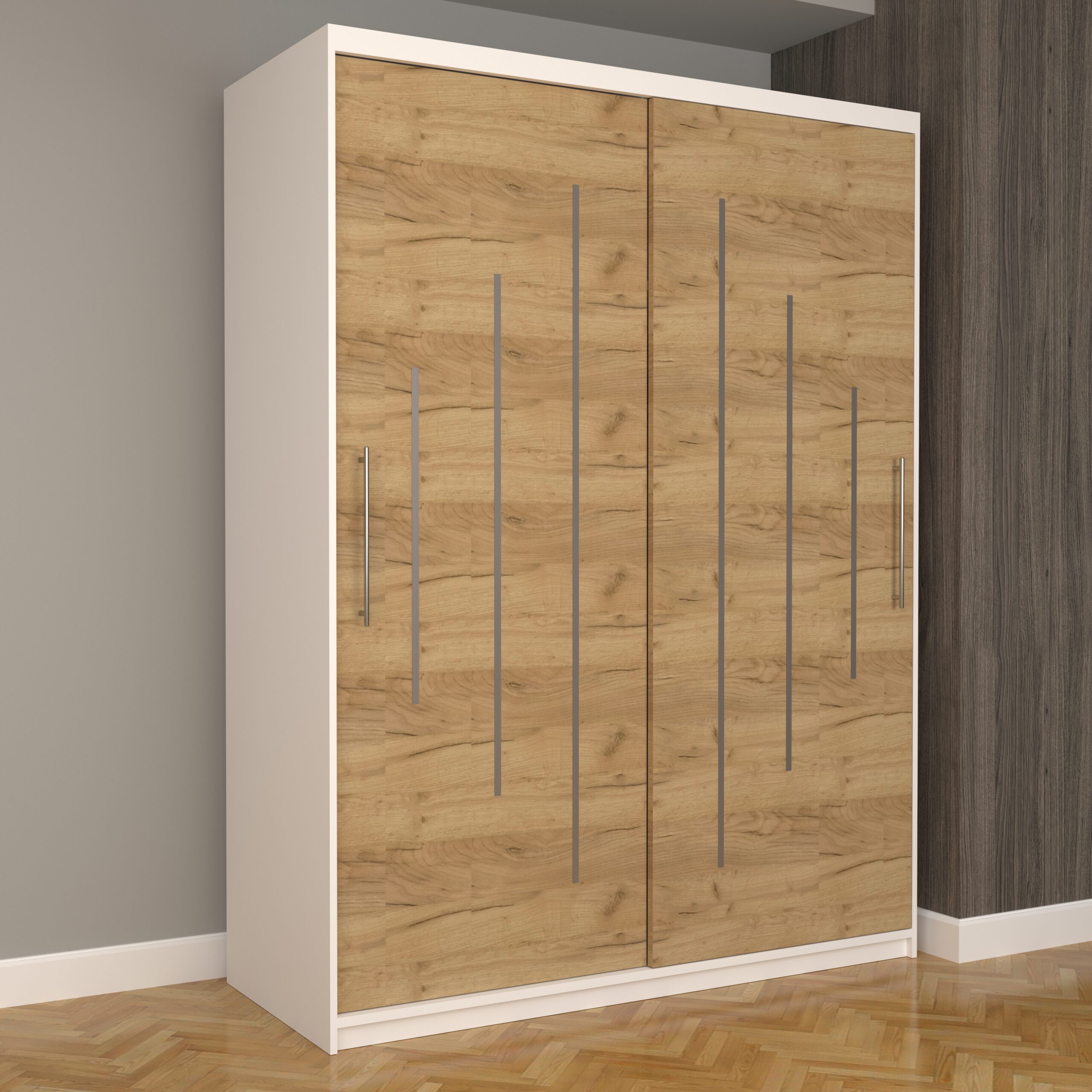 Dulap Dormitor Nova Ultra 150 cm x 200 cm , fara oglinda , alb cu usi glisante oak craft gold