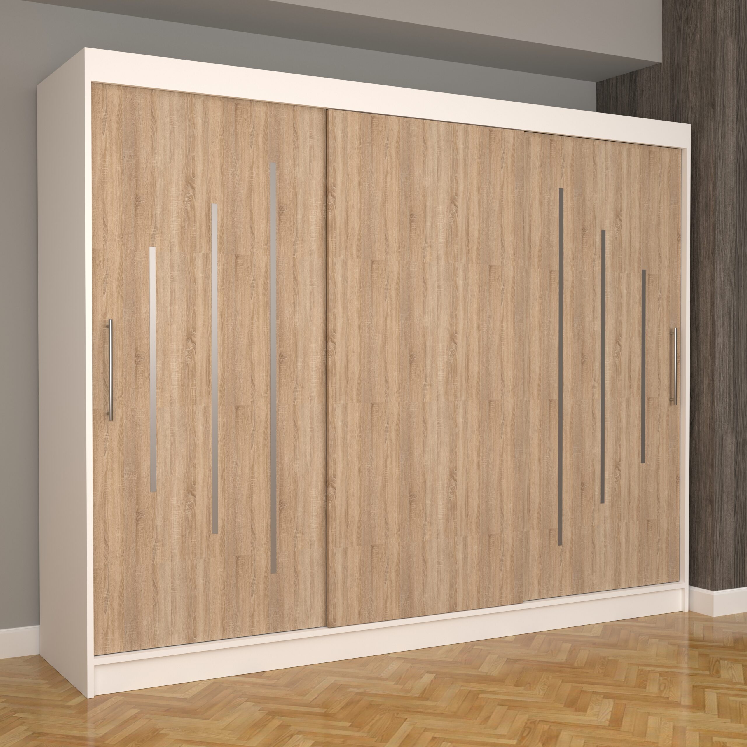 Dulap Dormitor Nova Ultra 250 cm x 200 cm , fara oglinda , Alb cu usi glisante Stejar Sonoma