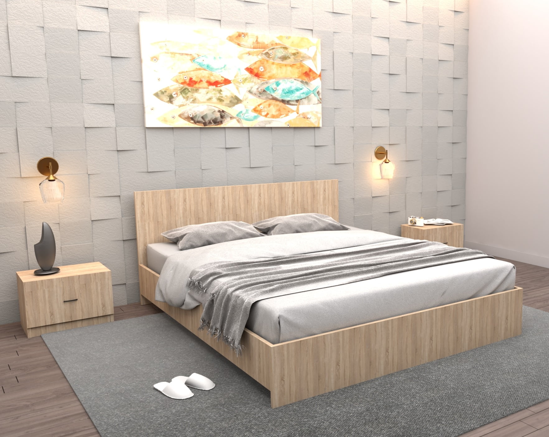 Patul Lorena Sonoma este realizat dintr-un material de calitate superioară, fiind robust și durabil. Cu o dimensiune de 160 cm lățime și 200 cm lungime, acesta este potrivit pentru un dormitor confortabil și modern. Patul vine cu o saltea confortabilă și două seturi de noptiere pentru a completa aspectul general al camerei. Cu un design elegant și simplu, patul Lorena Sonoma este alegerea perfectă pentru a adăuga un aspect elegant și modern camerei de dormit.