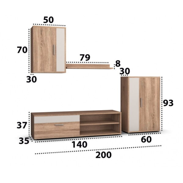 Set dormitor, pat tapitat, dulap, noptiere, comoda TV, sertare, Oliver, alb, Lorena.