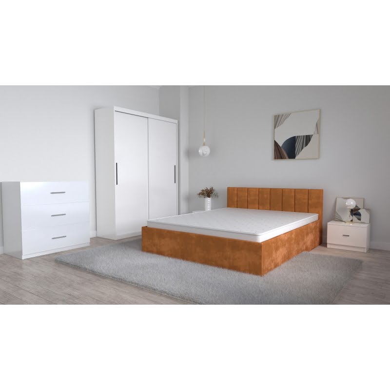Set Dormitor Oliver Alb, pat tapitat caramiziu, dressing 2 usi glisante fara oglinda, noptiere, comoda TV 3 sertare, culoare caramizie, usi glisante, oglinda, noptiere, comoda TV – Set Dormitor Oliver Alb, pat tapitat caramiziu, dressing 2 usi glisante fara oglinda, noptiere, comoda TV 3 sertare, culoare caramizie, usi glisante, fără oglindă, noptiere, comodă TV.